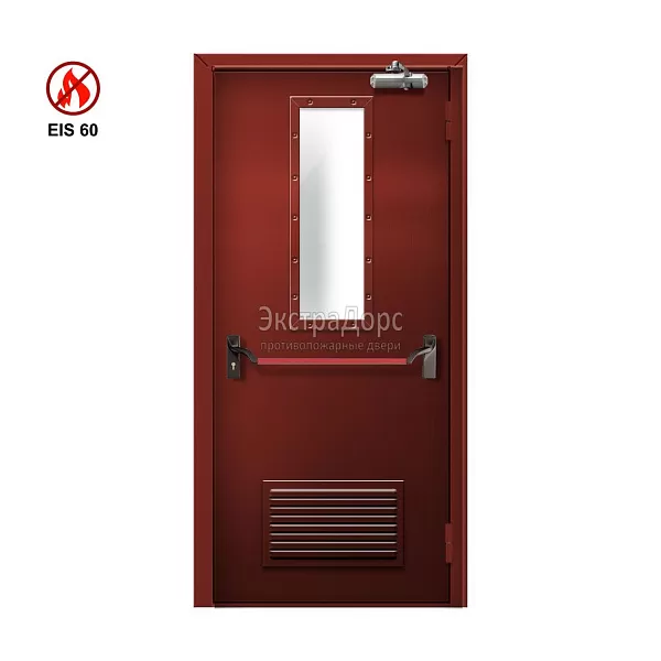 Противопожарная дверь EI 60 ДО-01-EI-60 однопольная остеклённая с решёткой и квадратным окном