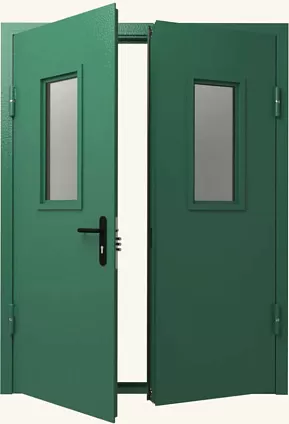 Герметичная дверь огнестойкая зеленая со стеклом двупольная в Домодедово
