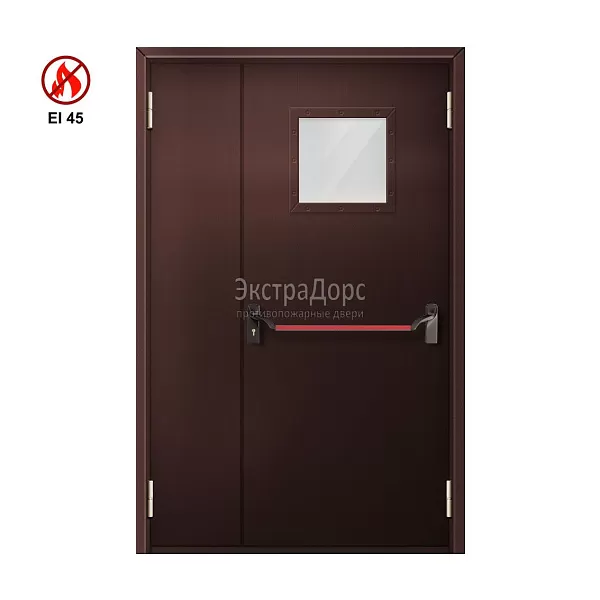 Двупольная огнестойкая дверь EI 45 ДО-02-EI45 ДП125 двупольная остекленная