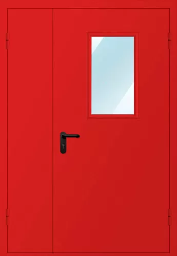 Двупольная огнестойкая дверь с порошковым покрытием EIW 60 двупольная стальная с остеклением