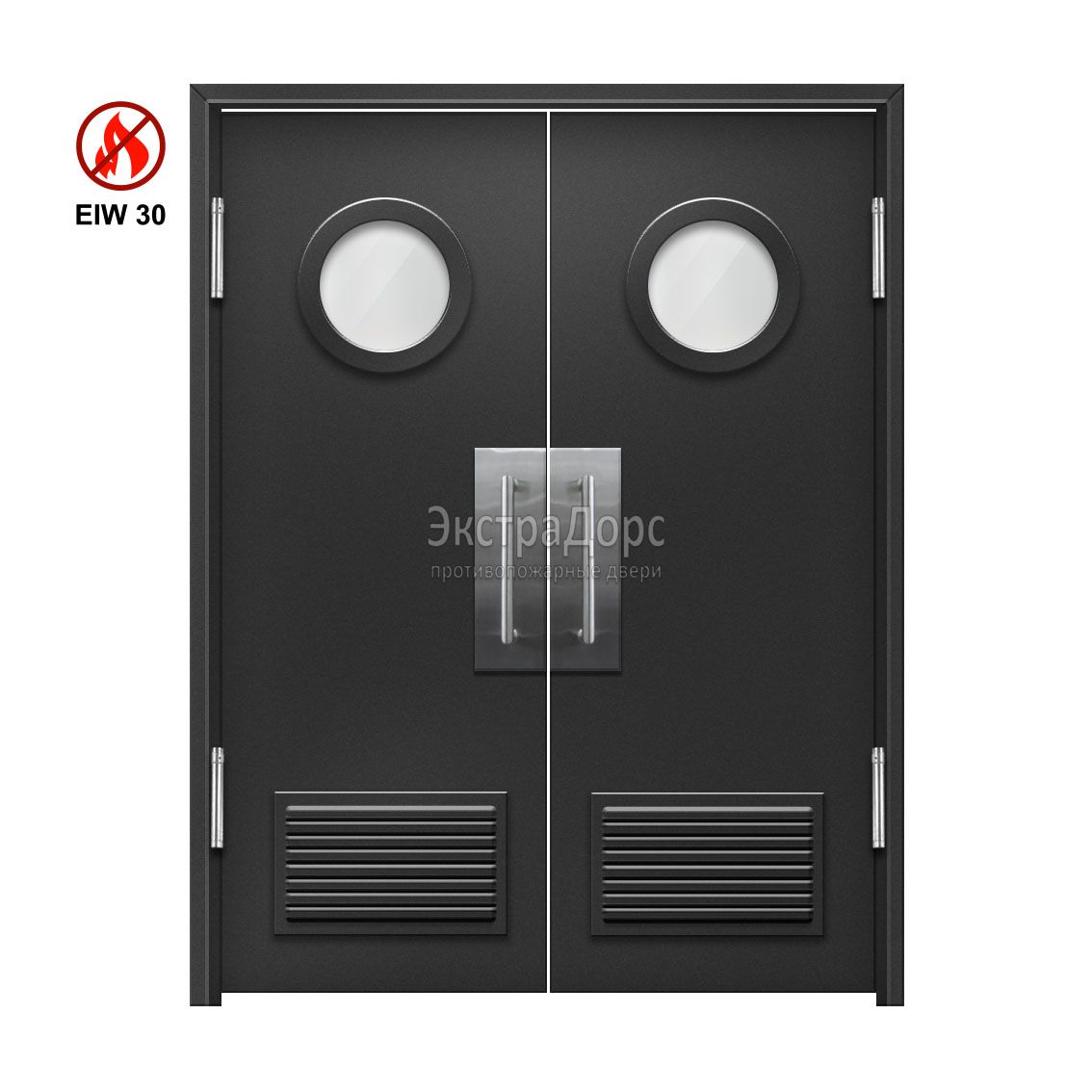 Двупольная огнеупорная утепленная маятниковая дверь с решетками остекленная EIW 30 ДПМ-02-EIW-30 ДП80 в Домодедово