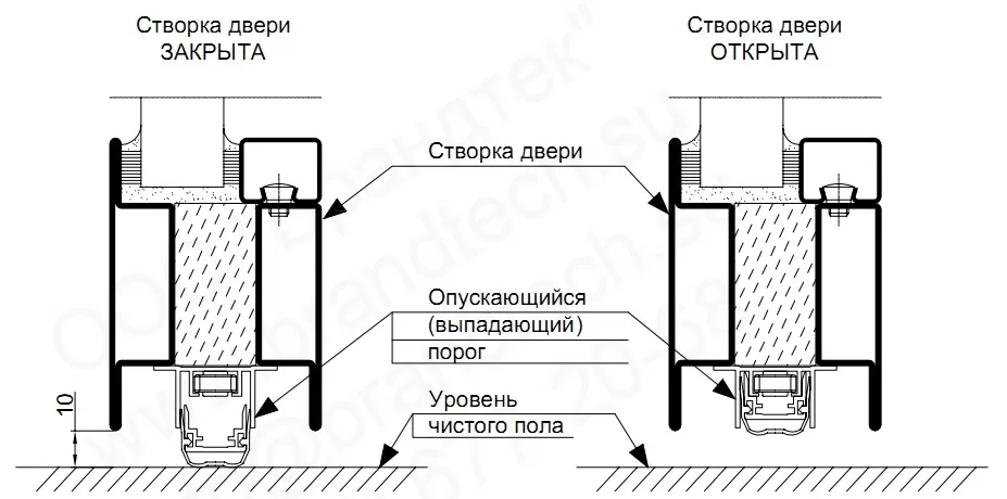 Конструкция противопожарной двери с выпадающим порогом