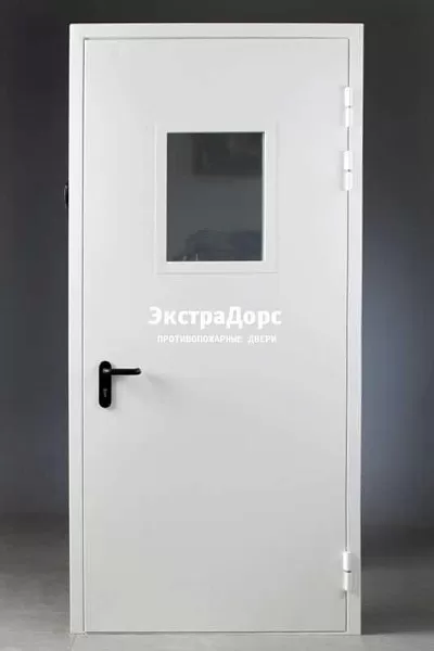 Противопожарная дверь белая одностворчатая со стеклом в Домодедово