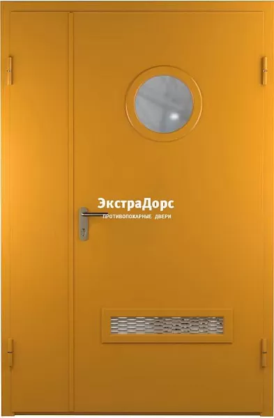 Противопожарная дверь с одной решёткой двупольная со стеклянным иллюминатором в Домодедово