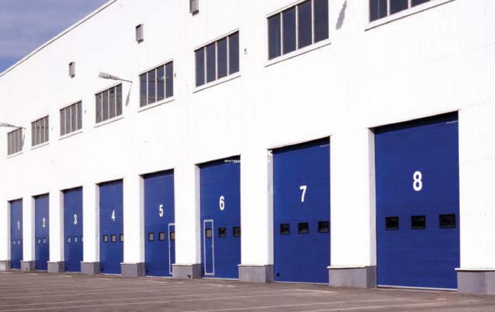 Синие огнеупорные промышленные ворота с окнами в Домодедово