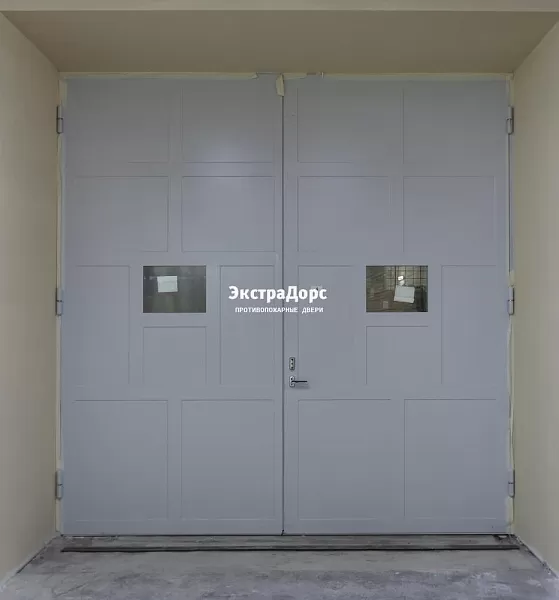 Серые распашные противопожарные ворота с остеклением в Домодедово