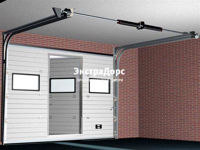 Подъемные противопожарные ворота с окнами и поворотной калиткой в Домодедово