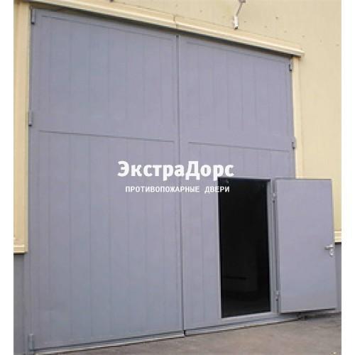 Серые противопожарные распашные ворота с калиткой в Домодедово