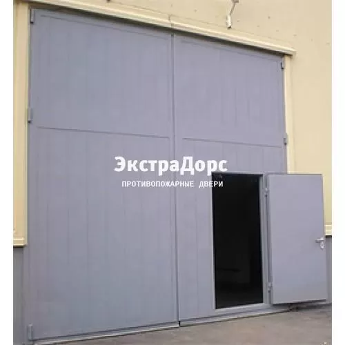 Подъемные противопожарные ворота с окнами и поворотной калиткой