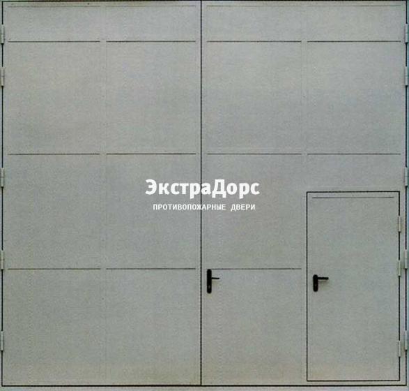 Противопожарные распашные серые ворота с калиткой в Домодедово