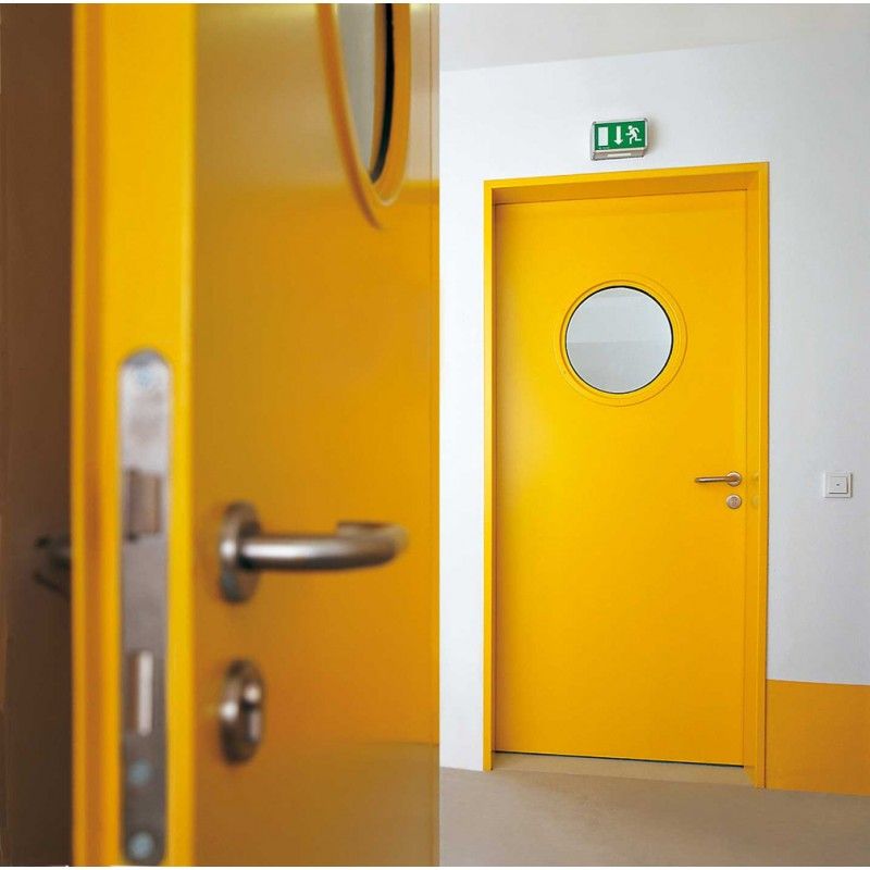 Противопожарная алюминиевая дверь со стеклом желтого цвета в Домодедово