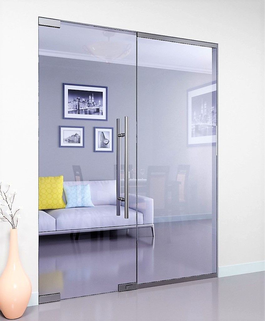 Противопожарная безрамная дверь со стеклом в гостиную в Домодедово