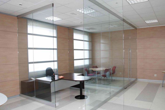 Противопожарная безрамная дверь в переговорную в Домодедово